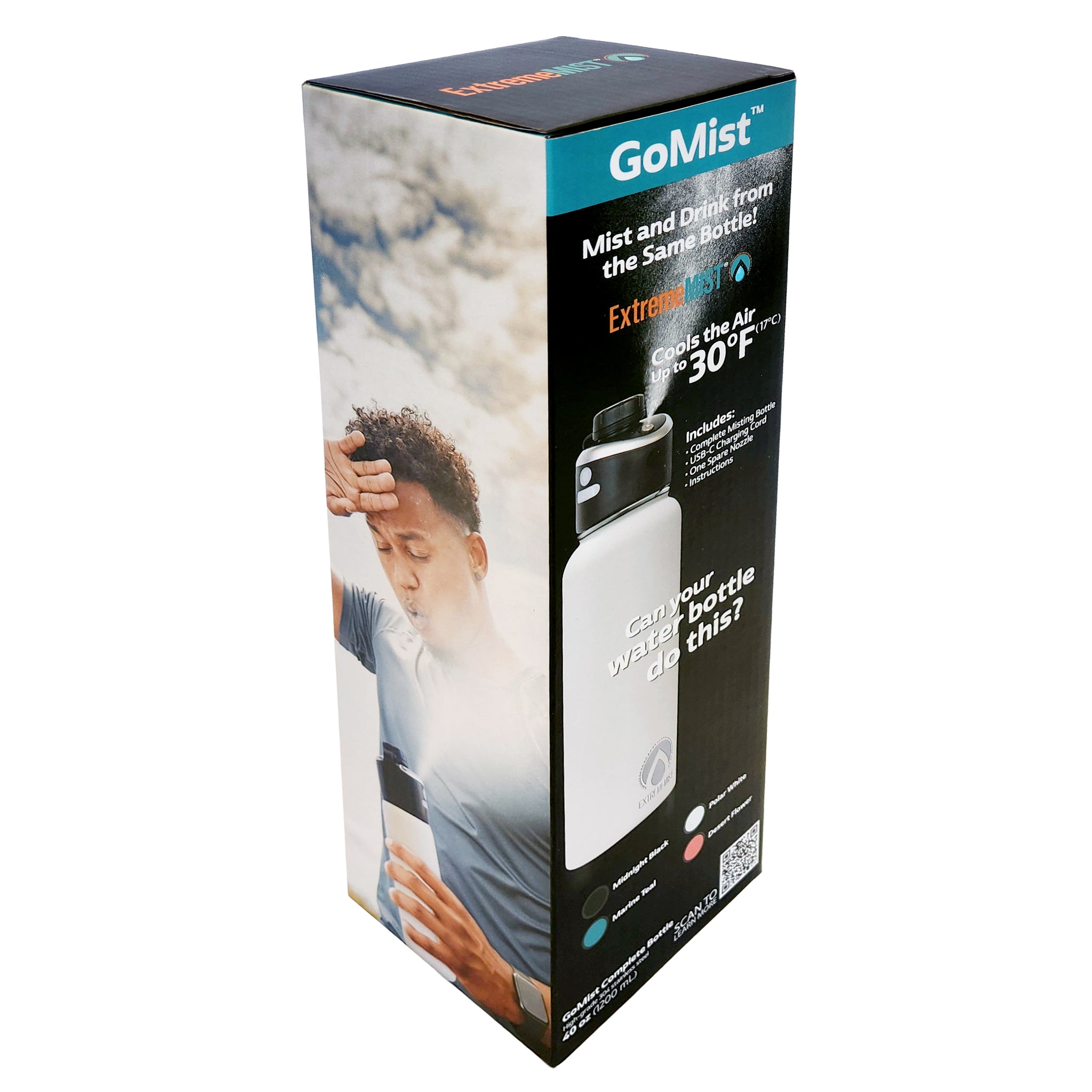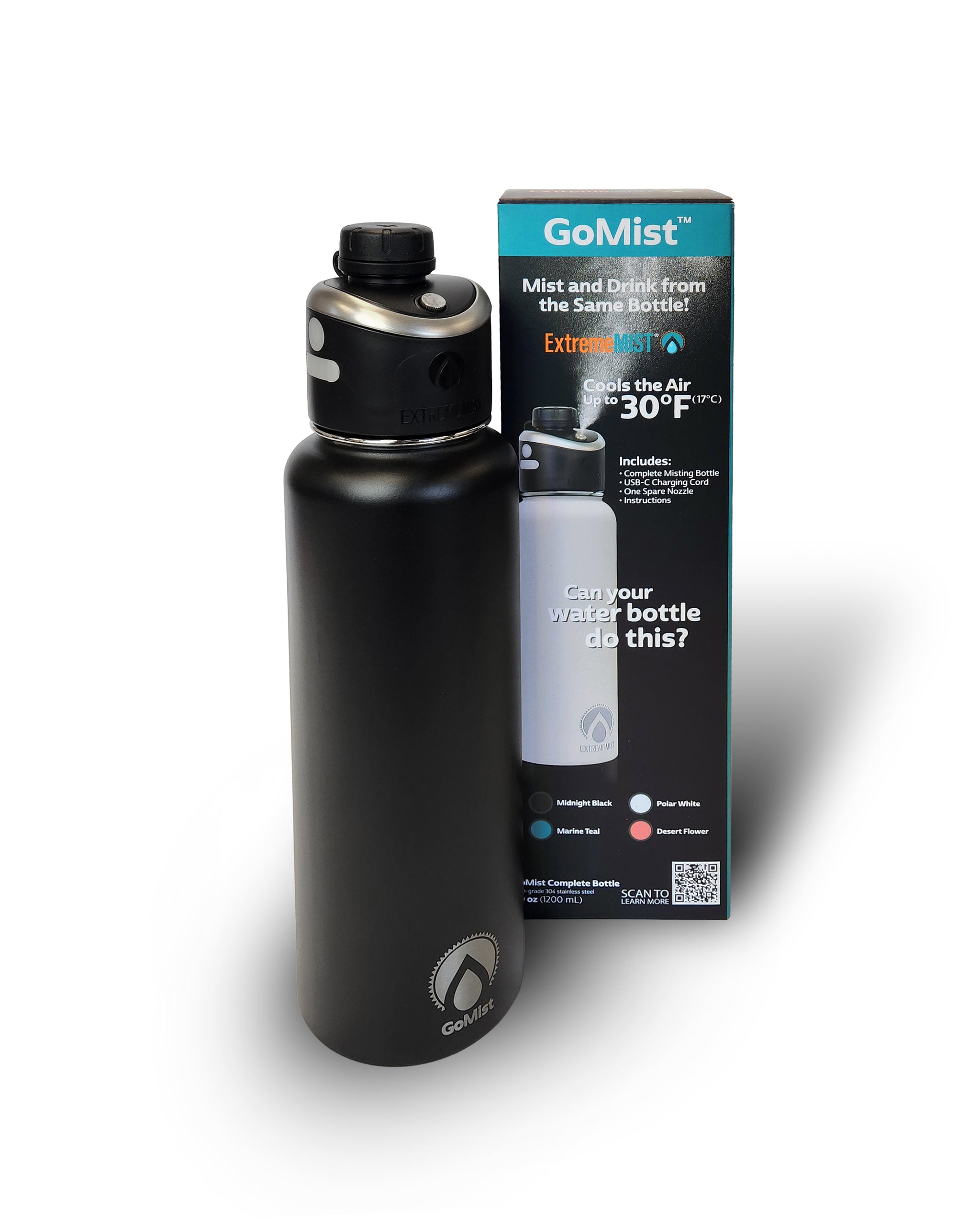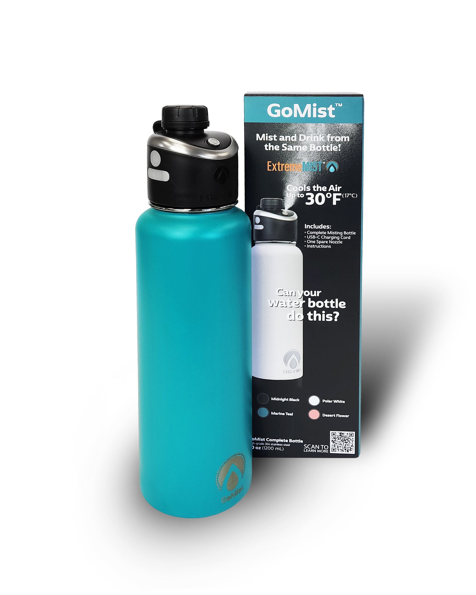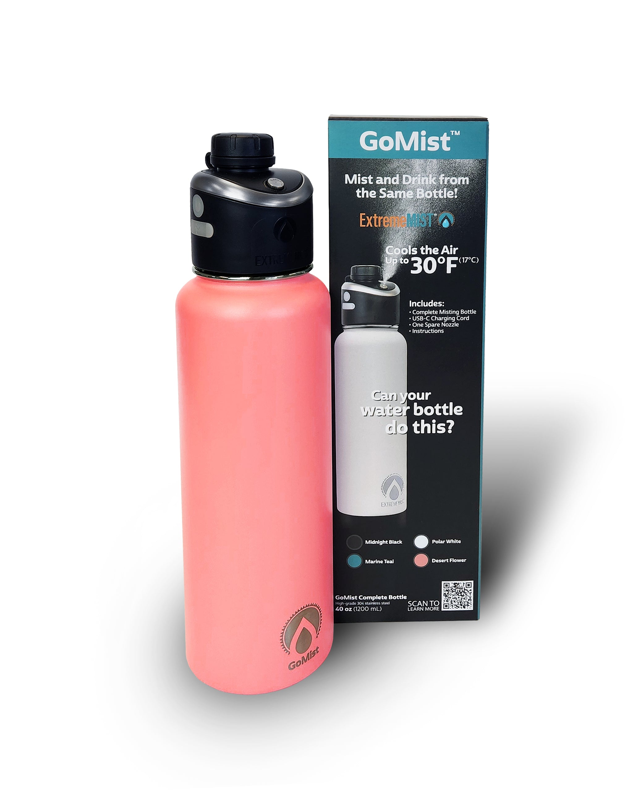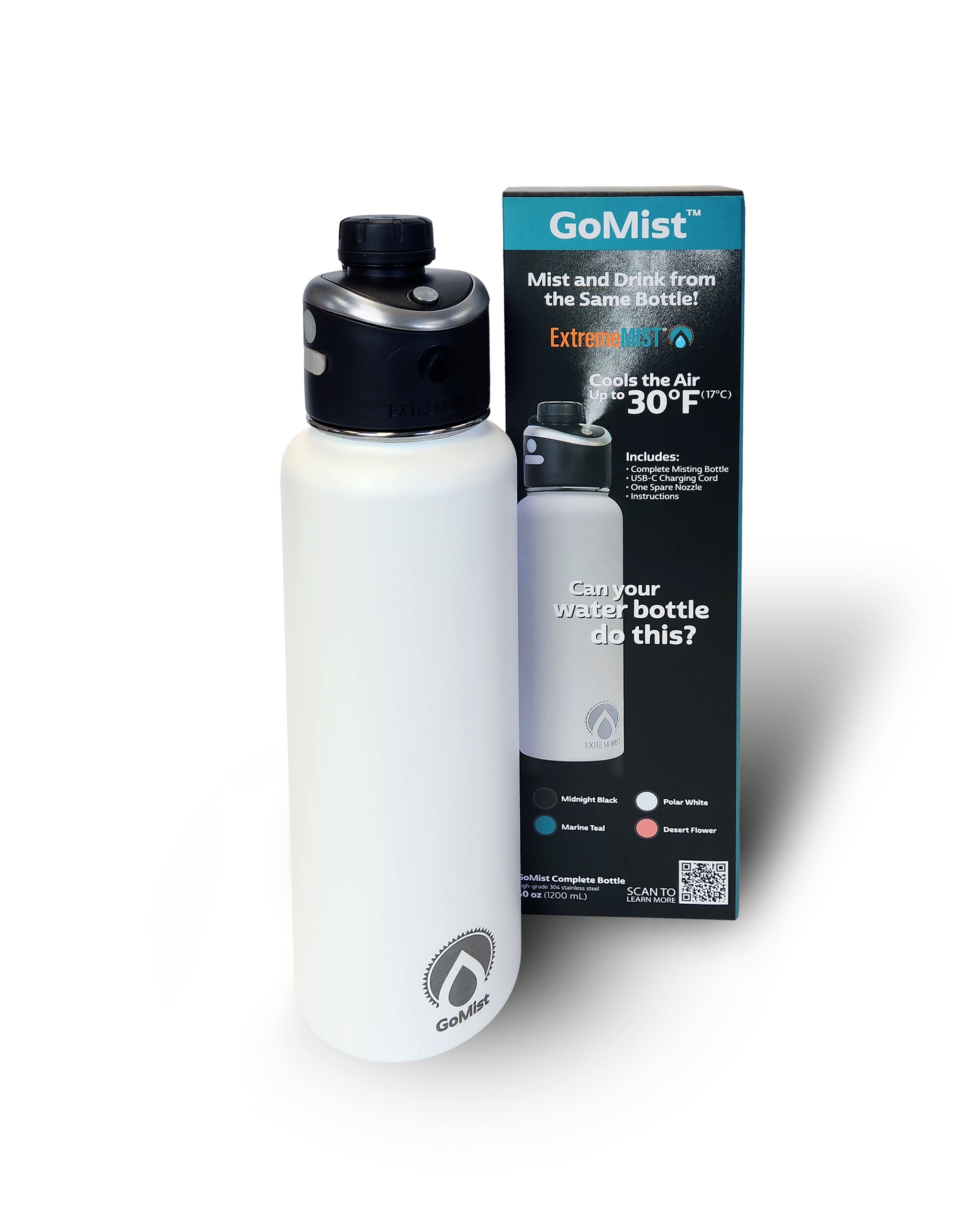 Now with an extended 40oz capacity for all-day hydration. GoMist® is the first water bottle designed to keep you cool and hydrated with one simple tool. While other bottles offer just a sip or a weak squeeze-trigger mist, GoMist® delivers real cooling power through a rechargeable, electronic misting system—no pumping, squeezing, or effort required.