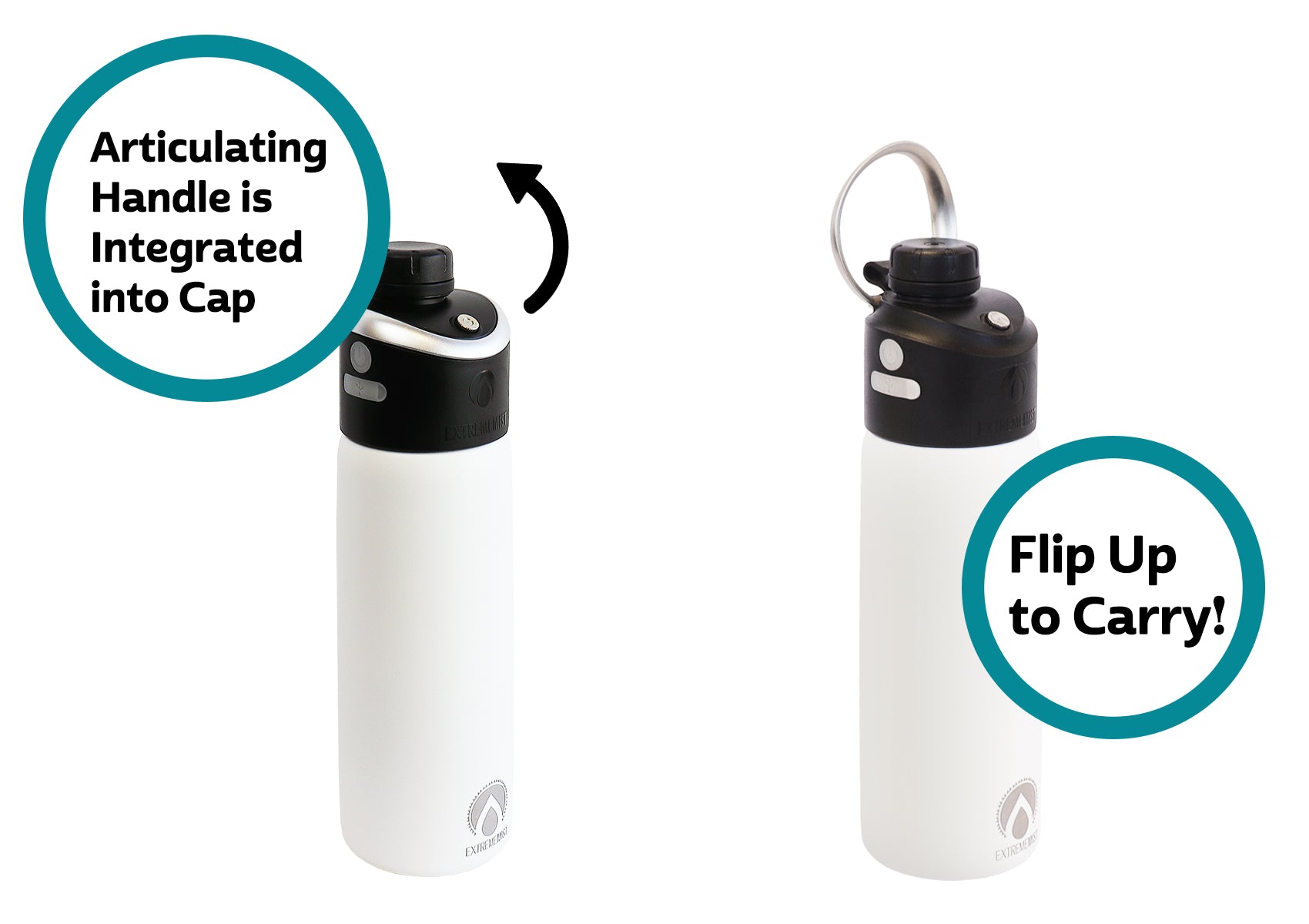 💧 Integrated foldaway brushed-metal handle for easy one-hand carry